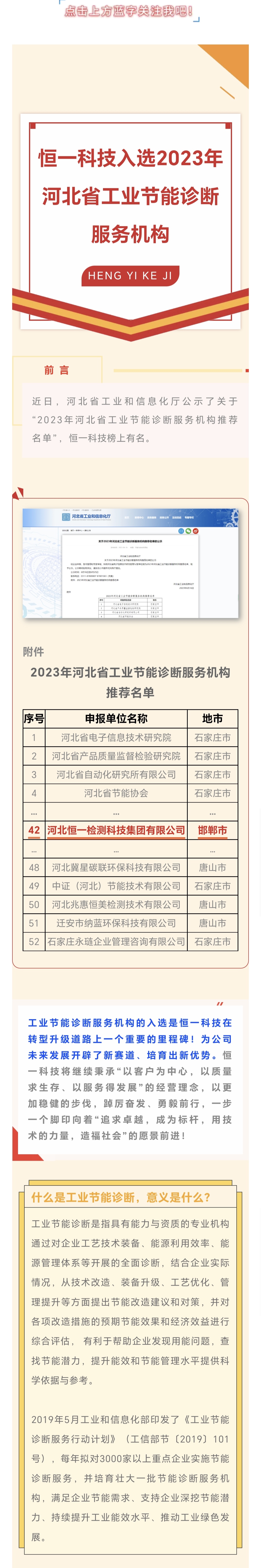 喜报│热烈祝贺恒一科技入选2023年河北省工业节能诊断服务机构
