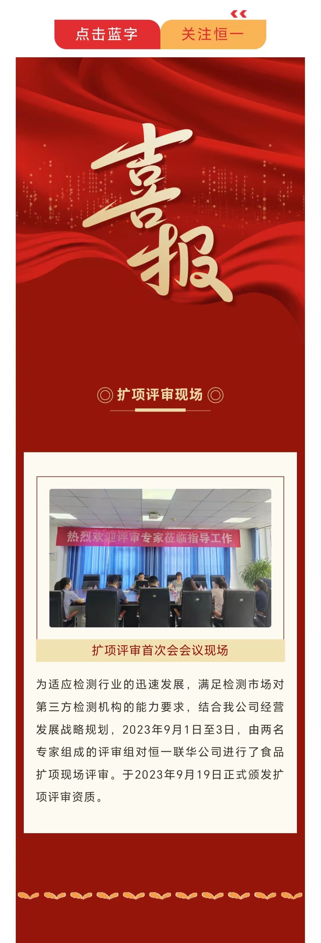 喜报│热烈祝贺恒一科技顺利通过CMA扩项现场评审!