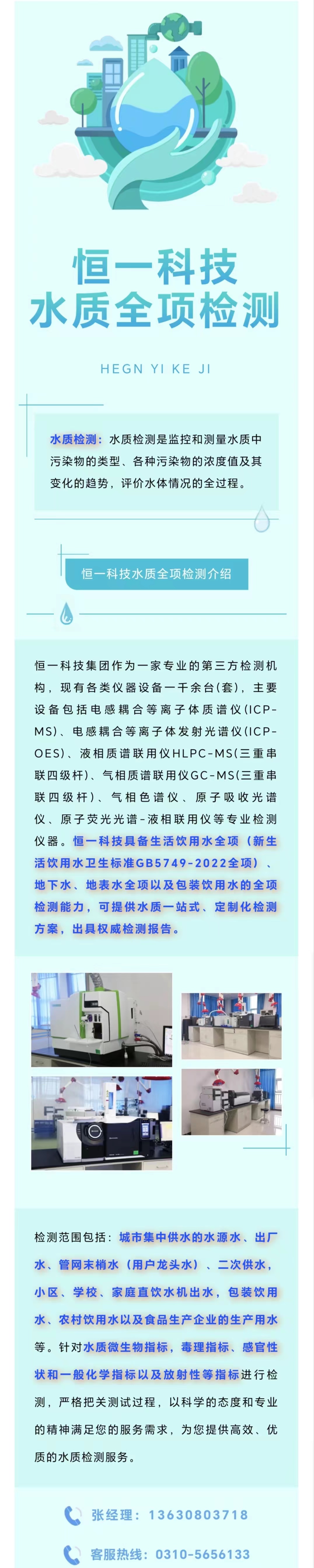 特色服务丨恒一科技水质全项检测!